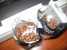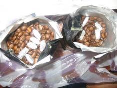 Під час митного контролю мікроавтобуса, в якому їхав герой нашої розповіді, співробітники митного поста „Тиса” Чопської митниці виявили цей підозрілий товар. Перевозився він в 2 упаковках з-під кави „CARTE NOIRE”, та не просто так. Кожну пігулку хтось ретельно та, певно що з любов’ю, загорнув у фольгу та сховав серед зерен кави.