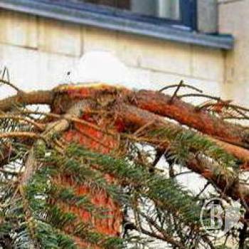 Це була красуня 15-метрової висоти (десь з 5-поверховий будинок). Справжня, не зліплена з гілок. Її подарувала райцентру одна з місцевих організацій, на подвір`ї якої проводилося планове прорідження ялинової алеї. І ось вранці 31-го грудня ошелешені люди побачили цю ялинку поваленою на асфальт.