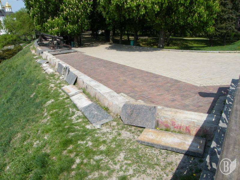 Вандалы посрывали плиты на древнем Валу города Чернигова