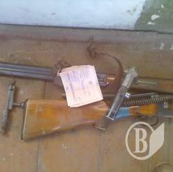 Спільними зусиллями правоохоронців із залученням спеціальних собак «Філ» та «Грета» виявлено та вилучено 86 мисливських набоїв 12 калібру, 44 набої 16 калібру, 35 набоїв 28 калібру, 69 набої до АК-47 (7,62 мм), 24 набої до карабіну(7,62 мм), 750 грам пороху марки «Круг», 700 грам пороху «Барс», 1,1 кг пороху «Сокол», 100 грамів трубчатого артилерійського пороху, 30-40 грамів тротилу (попередньо), незареєстрована мисливська рушниця – «Іж–58» 12 калібру обладнана вставкою для стрільби набоєм калібру 7,62 мм, оптичний приціл до рушниці з двома кронштейнами, затвор до гвинтівки Мосіна, 1757 капсулів до мисливських набоїв, 114 електродетонаторів, 3 пакунки з твердою сумішшю білого, жовтого та червоного кольорів по 50 грам (можливо гексоген), 109 пакунків з невідомою чорною гранульованою речовиною по 3 грами кожен та 1,5 метра бікфордова шнура.