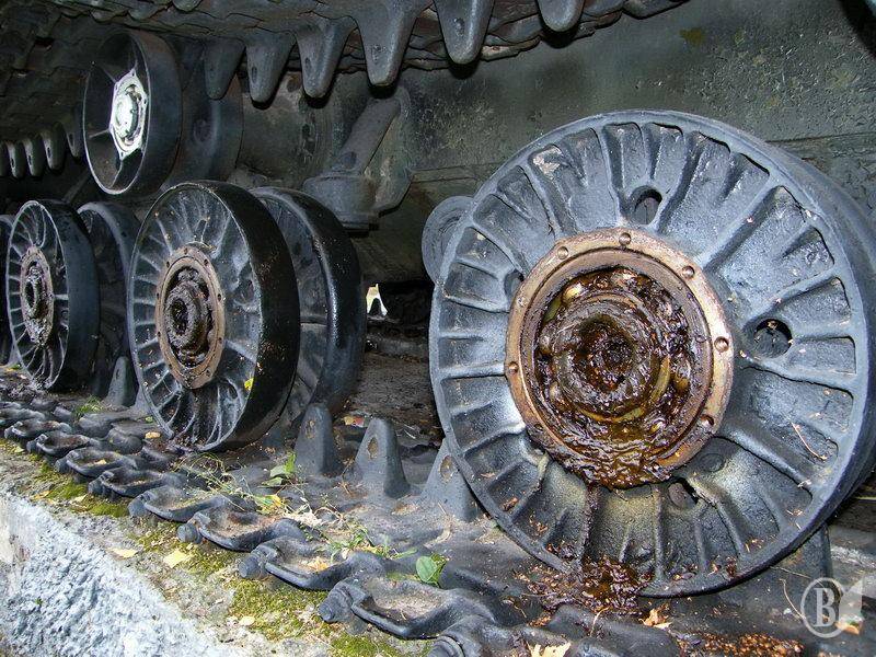 Згодом «виросли ноги» у добряче прикручених більш ніж півстоліття тому кришок катків танку, оголюючи щедро змащені масивні підшипники.