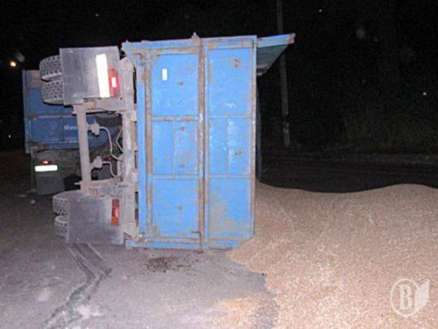 П’яний охоронець перекинув «КамАЗ» із зерном. Фото