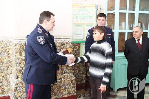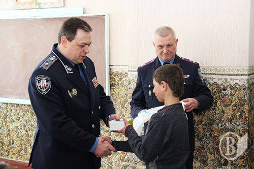 Олександр Михайлик висловив окрему подяку батькам і педагогам, що виховали справжніх громадян, готових прийти на допомогу ближньому і стати на захист справедливості. Генерал Михайлик вручив вихованцям школи міліцейську атрибутику, книги і поліграфічну продукцію. Головний міліціонер області поцікавився у педагогів чим би міліція могла допомогти школі, відповідь була дещо несподіваним - директор попросив подарувати стільці. Справа в тому, що ті, які є, не оновлювалися з радянських часів, вчитель трудового виховання разом з учнями ремонтують їх як можуть, але ті часто просто розвалюються під буйними підлітками.