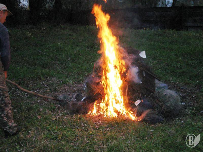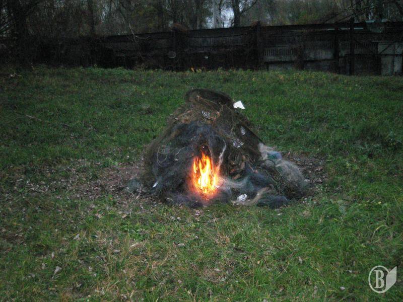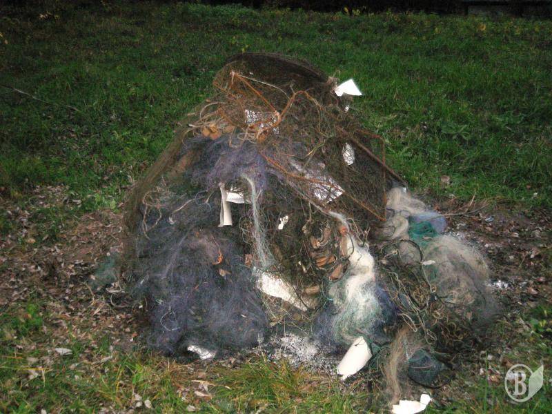 Работники Черниговрыбоохраны в присутствии представителей налоговой инспекции и городского совета уничтожили запрещенные орудия лова путем их сжигания.