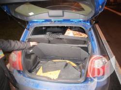 Во время проведения обзора багажного отделения автомобиля, в нише для запасного колеса, обнаружено 18 кг. красной икры. Грузовладельцем признала себя пассажирка – жена водителя.