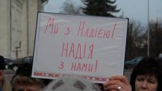 Чернігівці тримали у руках плакати «Надіє, ми з тобою», «За мир», «За Надію», «За Україну».