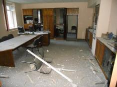 При візуальному огляді приміщення встановлено, що постріл відбувся в напрямку службового кабінету, який розташований на другому поверсі.