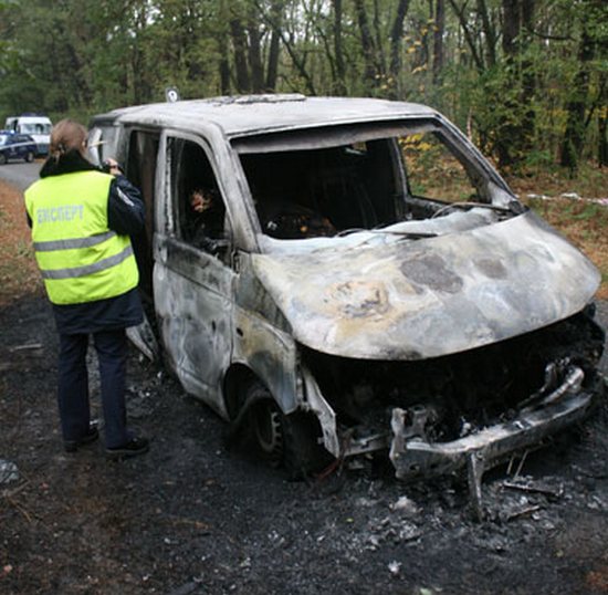 Известно, что микроавтобус уклонился от маршрута и сгорел. Остатки автомобиля были обнаружены за сотню метров от автодороги Киев–Чернигов. В салоне находились три труппа.