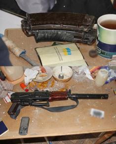 Підозрюваного затримали. У нього вилучений автомат Калашникова АКС-74У калібру 5,45 із глушником та три споряджені магазини.