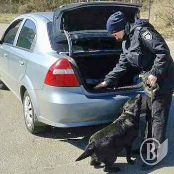 Під час здійснення профілактичних заходів щодо забезпечення безпеки дорожнього руху кінологи з собаками перевіряють автотранспорт на предмет перевезення зброї, боєприпасів та наркотичних речовин.