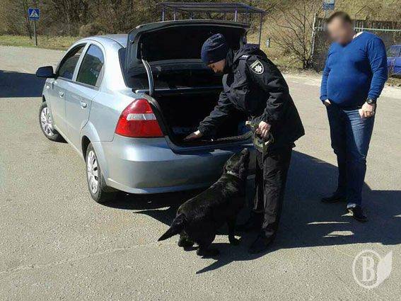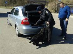 Під час здійснення профілактичних заходів щодо забезпечення безпеки дорожнього руху кінологи з собаками перевіряють автотранспорт на предмет перевезення зброї, боєприпасів та наркотичних речовин.