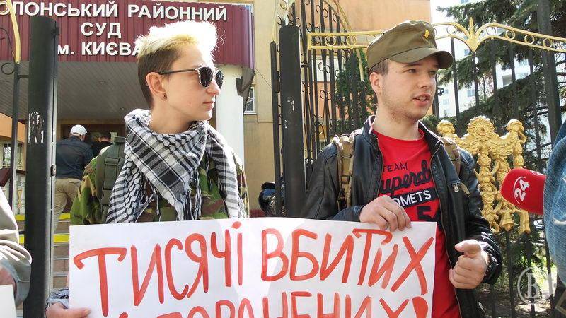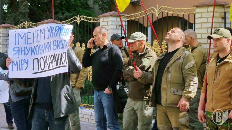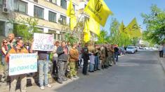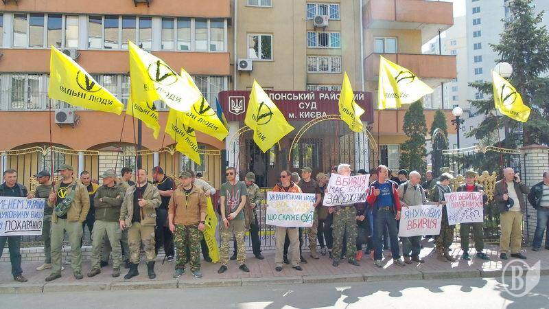 Чернігівський осередок руху «Вільні люди» бере участь у пікетуванні будівлі суду. Вони вимагають покарати колишнього легітимного за державну зраду.