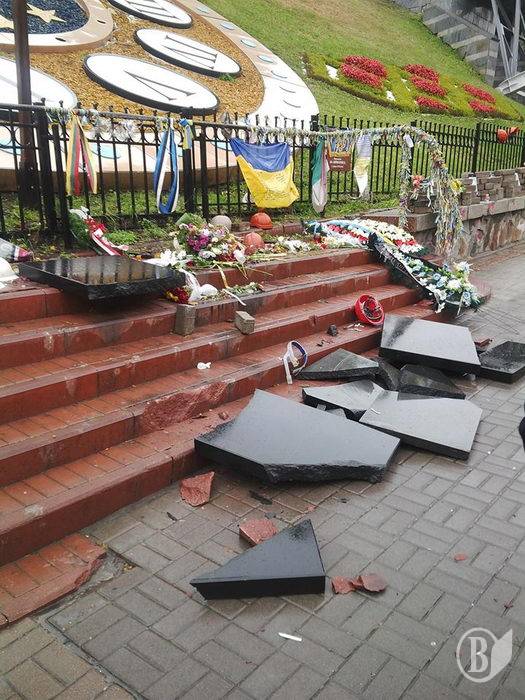 5.10.2017 Потрощено меморіальні дошки біля квіткового годинника в Києві