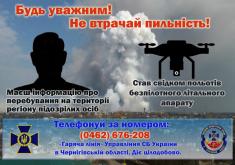 Із ситуацією, що склалася в регіоні та ризиком вчинення диверсій та терористичних актів на військових об`єктах, Служба безпеки України закликає мешканців та гостей Чернігівської області бути особливо уважними та відповідальними.