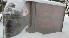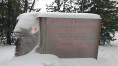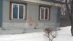 На ньому, де колись висіла меморіальна табличка, теж з'явився напис похапцем з балончика «Здесь покояться герои в крутах растреляли бандитов».