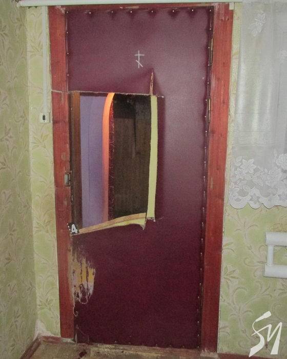 Він почав випилювати діру у вхідних дверях до будинку, які були замкнуті на замок та котрі тримав з середини будинку руками спільний товариш.