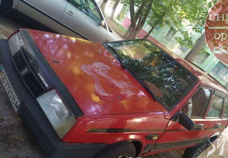 В одному з дворів серед «хрущовок» на вул. Козацька, 42 в Чернігові невідомі поки що вандали облили кислотою чи так званою «змивкою» кілька легковиків.