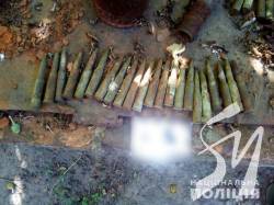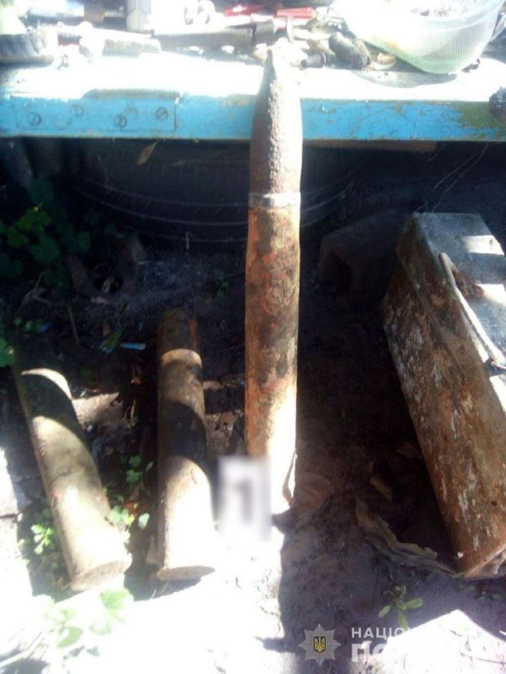 В результаті правоохоронці виявили та вилучили у чоловіка ствол від гвинтівки Мосіна, три десятки набоїв калібру 7.62мм, багнет, артилерійський снаряд калібру та ручну осколкову гранату Ф-1. Все зі слідами корозії, зібране на місцях боїв Другої світової війни.