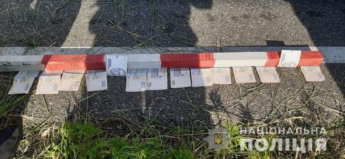 Співробітники групи реагування патрульної поліції за гарячими слідами затримали автомобіль, у якому знаходилися водій та двоє пасажирів. Коли раніше судимий 44-річний чоловік усвідомив, що буде відповідати перед законом, спробував викинути гроші в траву. Слідчо-оперативна група вилучила ці гроші.