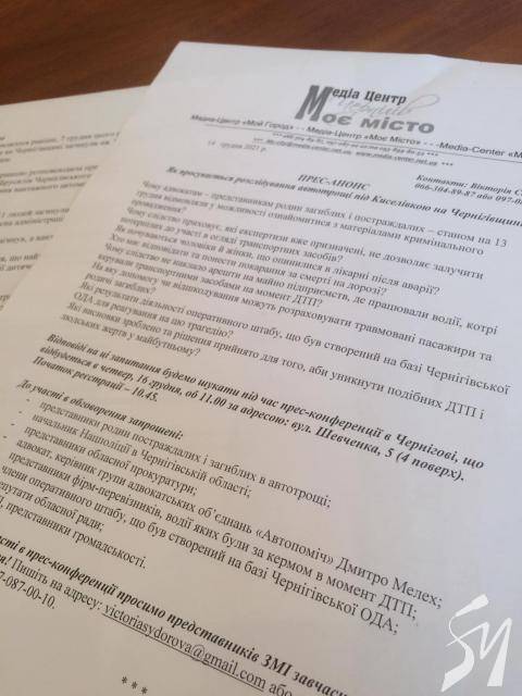 До участі в прес-конференції були запрошені начальник Нацполіції в Чернігівській області Володимир Нідзельський, керівник обласної прокуратури Сергій Василина, представники штабу оперативного реагування, що був створений на базі ОДА, перевізників, «Укртрансбезпеки». На жаль, особисто поспілкуватися з журналістами та рідними загиблих і постраждалих вони не прийшли, обмежилися письмовими чи усними коментарями (письмові додаю в розсилці релізу для ЗМІ).