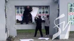 Зазначається, що невідомі зірвали прапор Європейського союзу, потрощили панелі із фотографіями Небесної сотні та загиблих у російсько-українській війні.