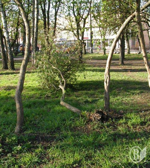 Вчорашня негода наробила лиха у Чернігові. Не втрималися не тільки хирляві ялини та бузок, а й могутні дерева у повному розквіті сил.