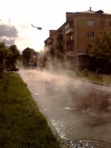 Внаслідок планових випробувань в центрі Чернігова по вул. Коцюбинського стався прорив комунікацій гарячого водопостачання.