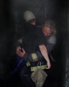 Тим часом сержант служби цивільного захисту Максим Сивець у квартирі №205 відшукав 35-річну Людмилу Індик. Вона надихавшись продуктів горіння, почала втрачати свідомість. Знявши з себе маску захисного протигазу, Максим одягнув її на жінку та вивів у небезпечне місце.
