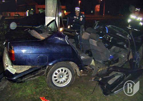 На улице Щорса в Чернигове состоялось ДТП. Пьяный 24-летний водитель BMW-520 на большой скорости слетел с дороги и врезался в электроопору.