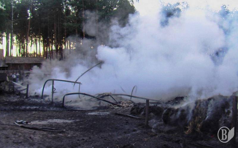 В одном из сараев хранилось сено для скота, который, к счастью хозяев, в это время была на пастбище. Скорее всего спичка или же окурок, брошенный поджигателем в сено, и привёл к пожару. Деревянные сооружения вспыхнули изнутри, словно порох.