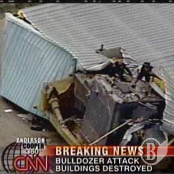 Бульдозер принял больше 200 попаданий – от служебных револьверов до М-16 и гранат. Его попытались остановить, перегородив дорогу скрепером. "Komatsu D355A" без особого труда отбросил преграду.