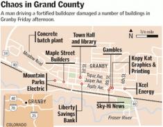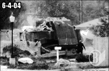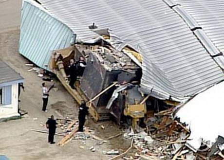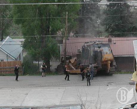 Бульдозер принял больше 200 попаданий – от служебных револьверов до М-16 и гранат. Его попытались остановить, перегородив дорогу скрепером. "Komatsu D355A" без особого труда отбросил преграду.