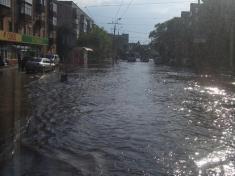 Неисправность канализации привела к тому, что вода осталась прямо на улицах и перекрыла движение транспорта.