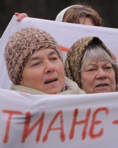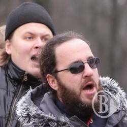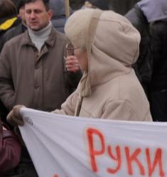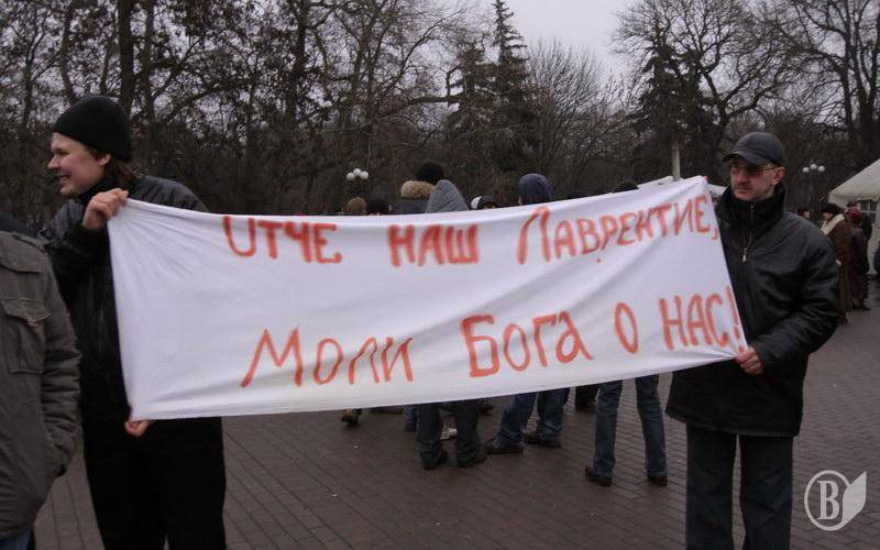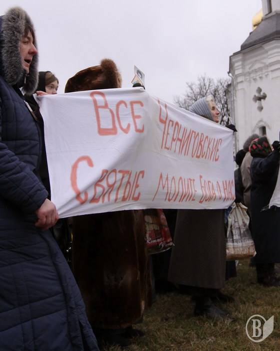 Не забыли агрессивные верующие и простыни развернуть с давно известными черниговцам лозунгами. Впрочем, специально к прибытию Патриарха Филарета нарисовали и некоторые новые, с ругательствами в его адрес.