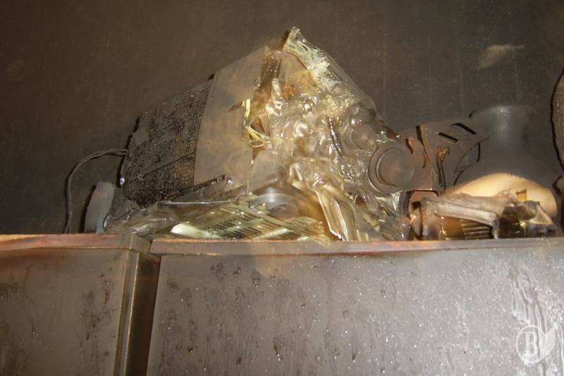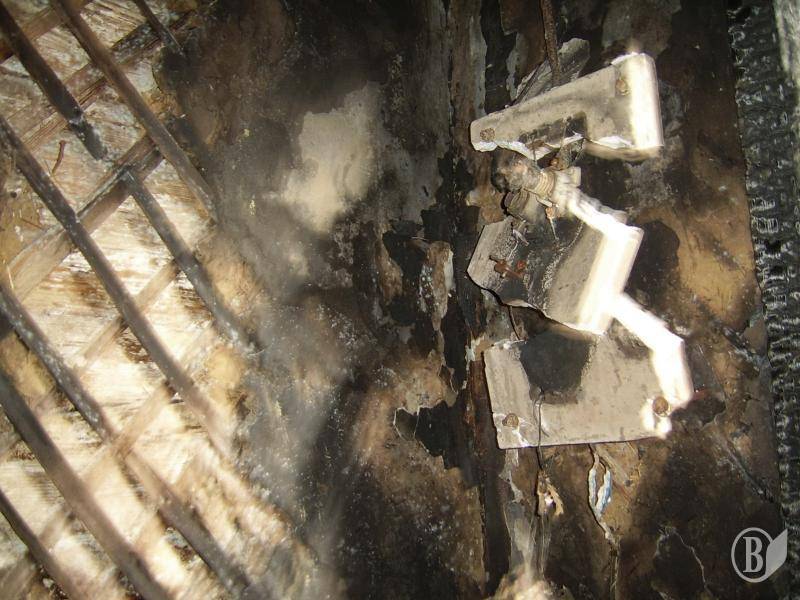 А ось і офіційний документ – «Технічний висновок по дослідженню причини виникнення пожежі»: «Встановлено, що осередок пожежі знаходиться у житловій кімнаті квартири № 3 у кутку, в якому змонтований електролічильник, на що вказували осередкові ознаки: осередковий конус, обвалення штукатурки, ступінь обвуглення дерев’яних конструкцій стіни та стелі».