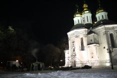 О 00 год. 12 хв. сталася пожежа брезентового намету (10х6 м), в якому розташовано похідний храм Святої Великомучениці Єкатерини Української Православної Церкви Московського патріархату. Вогнем знищено намет та майно. Причина та збитки встановлюються. Врятовано матеріальних цінностей на суму 2 000 грн.