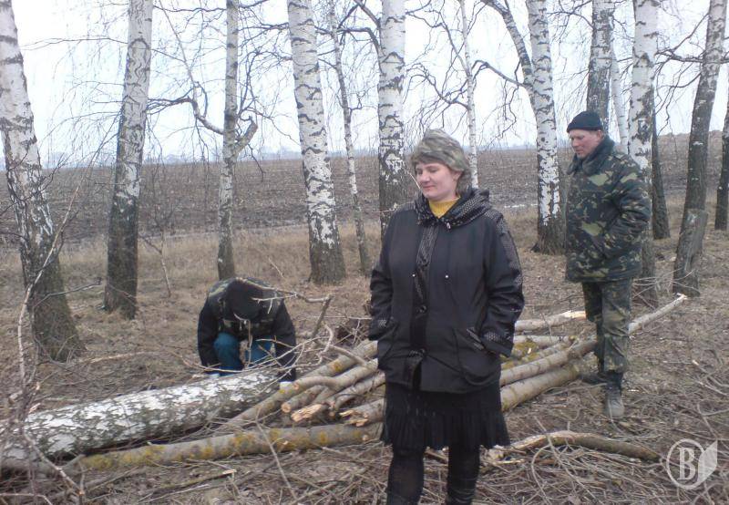 На фото: Держінспектор з ОНПС разом з депутатом сільської ради та сільським головою Горбівської сільської ради під час обстеження місця знесення зелених насаджень.