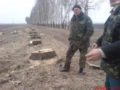 Перевіркою встановлено, що на території Горбівської сільської ради за межами населеного пункту в захисній лісосмузі вздовж ґрунтової дороги Р-67 Горбове, ФОП Кадала Р.А. самовільно здійснив заготівлю деревини шляхом суцільної рубки ряду дерев тополі в кількості 212 шт. (з них ростучих 201 шт. та 11 шт. сухі), сосни сухостійної – 10 шт., берези – 10 шт.(ростучої – 5 шт., сухостійної – 5 шт.). Крім того, пошкоджено до ступеня припинення росту 2 дерева берези (вивернуто з корінням - 1 шт. та зламаний стовбур – 1 шт.), та 1 дерево сосни пошкоджене до ступеня неприпинення росту.