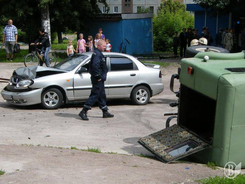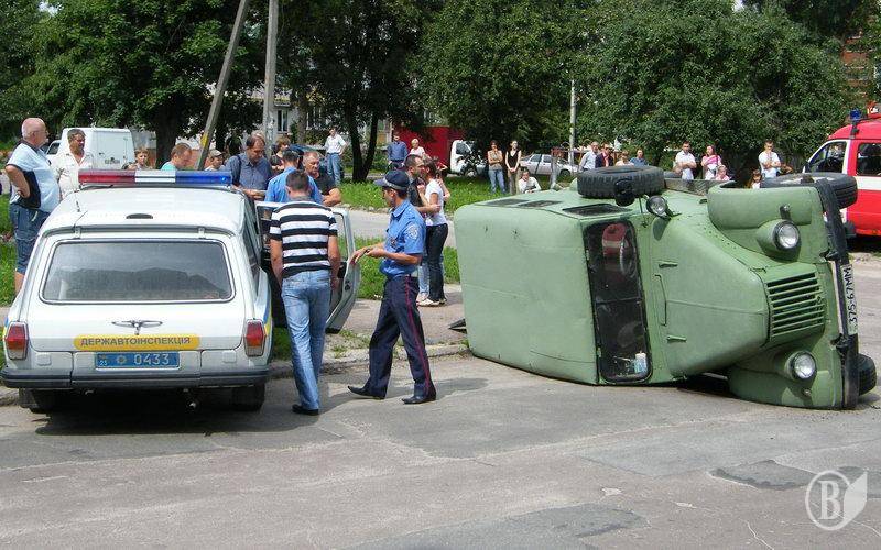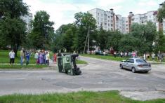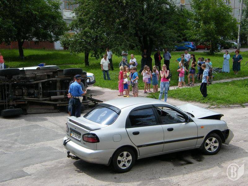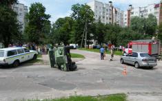 15.06.2010 Водій дуже поспішав: пом’яв три авто і сам перекинувся. ВІДЕОурок