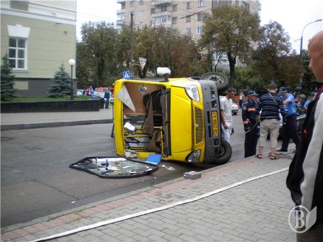 У результаті маршрутка з пасажирами перевернулася і лягла на бік напроти приміщення Національного банку в Чернігові.