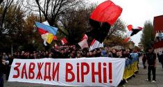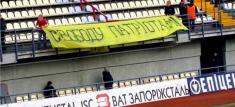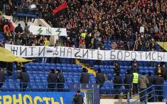 Днепропетровск. ФК «Днепр». «На колени перед Украиной!» Без черно-красных флагов, но тоже впечатляет...