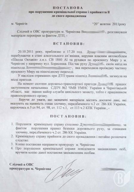 До редакції «Високого Валу» звернувся обурений чоловік збитої насмерть жінки. Нагадаємо, трагедія трапилася на пішохідному переході по пр. Миру в Чернігові 20-го жовтня.