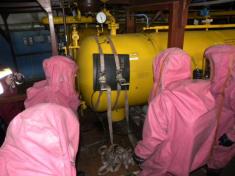 Тим часом, ситуація змінюється, і від керівництва навчань надходить нова ввідна. Через розрив ресивера аміачної компресорної стався витік майже 2,5 тонн аміаку.