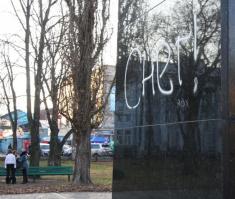 Вранці у понеділок, 12 грудня напису на пам’ятнику уже не було…