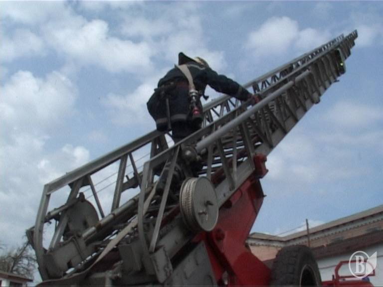 На другому етапі навчань було відпрацьовано гасіння умовної пожежі на даху одного з корпусів ізолятору. Для цього була задіяна автодрабина.