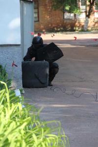 Безпосереднє обстеження місця розташування підозрілої знахідки здійснили працівники вибухо-технічної служби Науково-дослідного експертно-криміналістичного центру УМВС. Вони, екіпіровані у спеціальний захисний одяг, ретельно оглянули невідомий згорток та доповіли керівництву, яке ухвалило рішення про руйнування знайденого предмета на місці його виявлення.