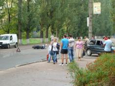 Сьогодні ввечері у місті Ніжині біля зупинки "Молодіжна" водій скутера на високій швидкості зіткнувся з легковиком.