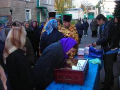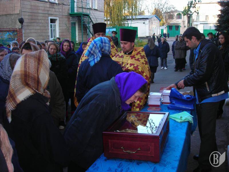 Вклонилися святині та звернулися з молитвою співробітники установи та засуджені. Більшість жінок, які відбувають покарання у колонії, зібралися на центральній алеї установи, біля місця закладення майбутнього храму та приєднались до молитви. Кожна засуджена, яка приклалася до святих мощей, була помазана святим миром, отримала православний молитвослов та пам’ятну ікону на честь Хресного ходу установами виконання покарань України.