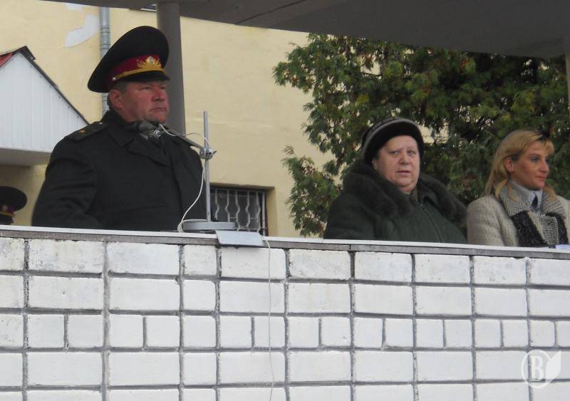 В свою чергу заступник голови організації солдатських матерів України Ніна Лисогор вручила коровай начальнику навчального центру, а настоятель місцевої Свято-Георгіївської церкви отець Ярослав благословив молодих юнаків на добру службу.