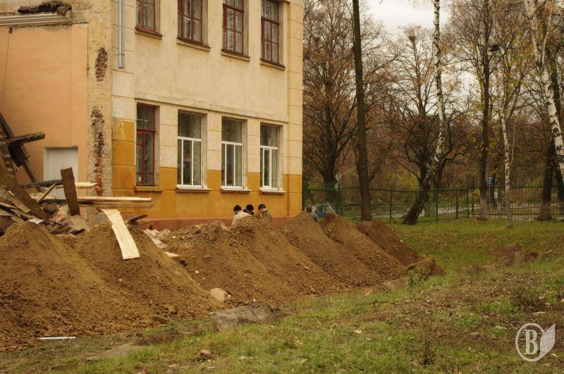 З пів другої під стінами початкової школи починають вовтузитися робочі. Вони копають яму. Вже другу.